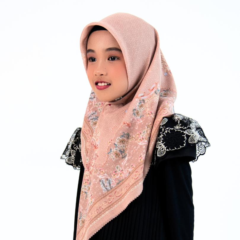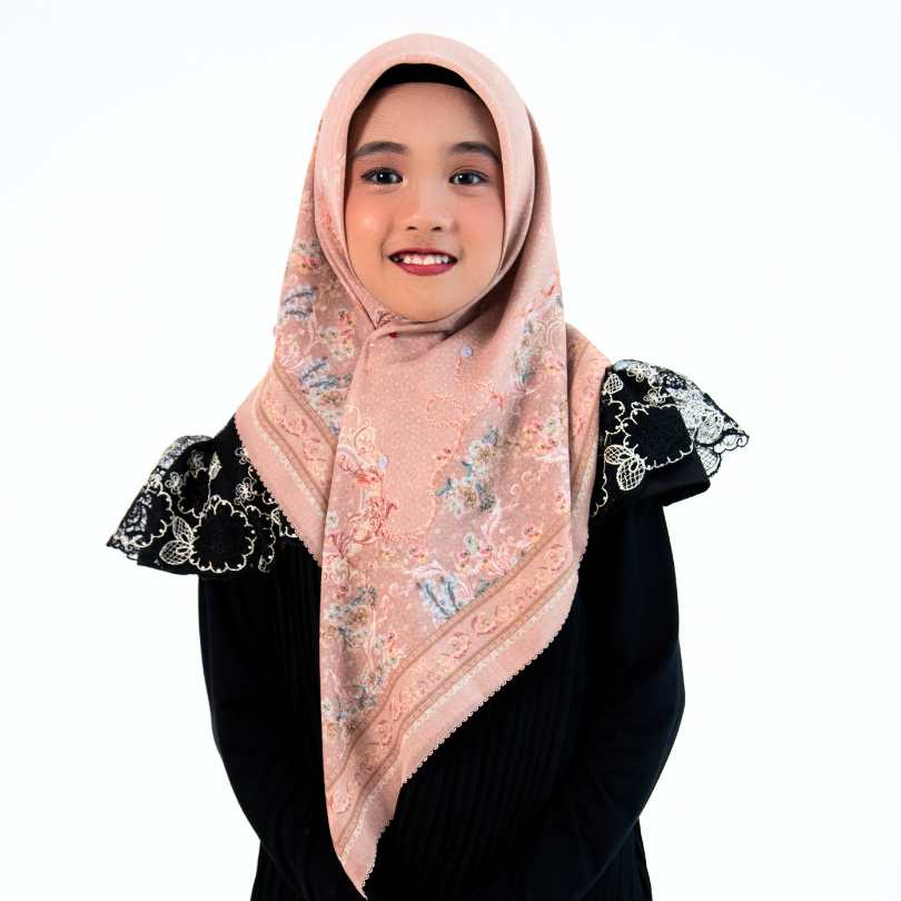 Hijab Segi Empat Series berkualitas tinggi yang mengusung tema Legacy of a Mother’s Grace, menggambarkan perjalanan sebuah brand yang tumbuh dari warisan cinta seorang ibu – ketulusan, ketekunan, dan kasih tanpa batas. Desain ini menjadi simbol elegansi dan kehangatan dalam proses tumbuh, dari kenangan masa lalu menuju kejayaan masa depan. Desainnya mengusung gaya vintage minimalis dengan sentuhan ornamen baroque mewah,dimana lengkungan lengkungan motif yang saling berjalin melambangkan pelukan kasih antara ibu dan putri sebagai fondasi kuat lahirnya karakter dan identitas brand.