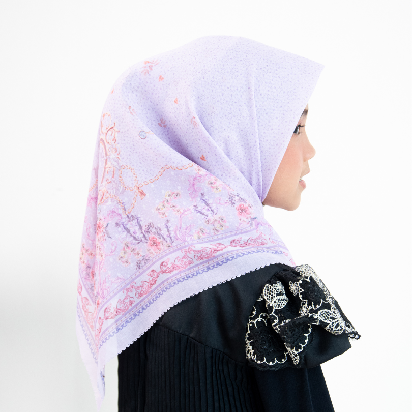 Hijab Segi Empat Series berkualitas tinggi yang mengusung tema Legacy of a Mother’s Grace, menggambarkan perjalanan sebuah brand yang tumbuh dari warisan cinta seorang ibu – ketulusan, ketekunan, dan kasih tanpa batas. Desain ini menjadi simbol elegansi dan kehangatan dalam proses tumbuh, dari kenangan masa lalu menuju kejayaan masa depan. Desainnya mengusung gaya vintage minimalis dengan sentuhan ornamen baroque mewah,dimana lengkungan lengkungan motif yang saling berjalin melambangkan pelukan kasih antara ibu dan putri sebagai fondasi kuat lahirnya karakter dan identitas brand.