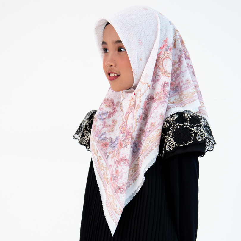 Hijab Segi Empat Series berkualitas tinggi yang mengusung tema Legacy of a Mother’s Grace, menggambarkan perjalanan sebuah brand yang tumbuh dari warisan cinta seorang ibu – ketulusan, ketekunan, dan kasih tanpa batas. Desain ini menjadi simbol elegansi dan kehangatan dalam proses tumbuh, dari kenangan masa lalu menuju kejayaan masa depan. Desainnya mengusung gaya vintage minimalis dengan sentuhan ornamen baroque mewah,dimana lengkungan lengkungan motif yang saling berjalin melambangkan pelukan kasih antara ibu dan putri sebagai fondasi kuat lahirnya karakter dan identitas brand.