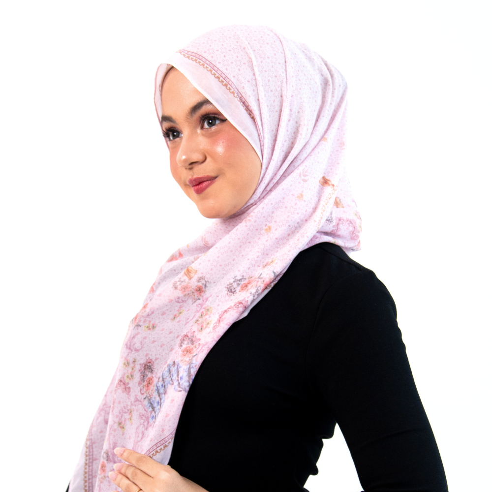 Hijab Segi Empat Series berkualitas tinggi yang mengusung tema Legacy of a Mother’s Grace, menggambarkan perjalanan sebuah brand yang tumbuh dari warisan cinta seorang ibu – ketulusan, ketekunan, dan kasih tanpa batas. Desain ini menjadi simbol elegansi dan kehangatan dalam proses tumbuh, dari kenangan masa lalu menuju kejayaan masa depan. Desainnya mengusung gaya vintage minimalis dengan sentuhan ornamen baroque mewah,dimana lengkungan lengkungan motif yang saling berjalin melambangkan pelukan kasih antara ibu dan putri sebagai fondasi kuat lahirnya karakter dan identitas brand.