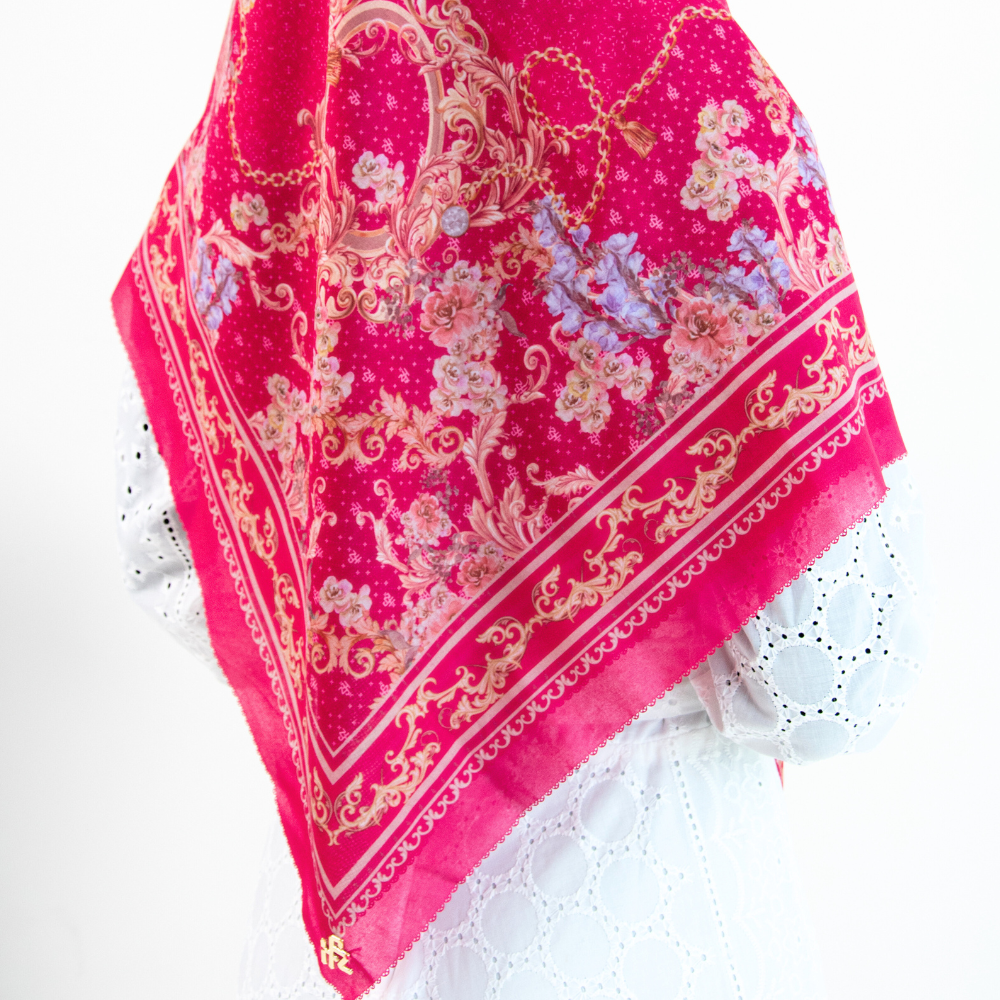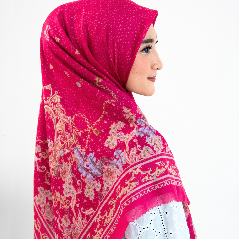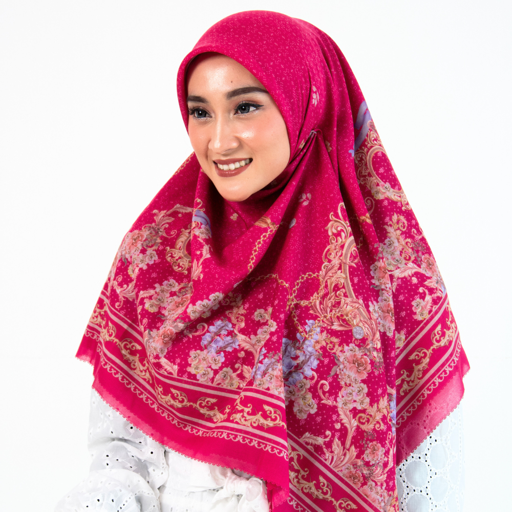 Hijab Segi Empat Series berkualitas tinggi yang mengusung tema Legacy of a Mother’s Grace, menggambarkan perjalanan sebuah brand yang tumbuh dari warisan cinta seorang ibu – ketulusan, ketekunan, dan kasih tanpa batas. Desain ini menjadi simbol elegansi dan kehangatan dalam proses tumbuh, dari kenangan masa lalu menuju kejayaan masa depan. Desainnya mengusung gaya vintage minimalis dengan sentuhan ornamen baroque mewah,dimana lengkungan lengkungan motif yang saling berjalin melambangkan pelukan kasih antara ibu dan putri sebagai fondasi kuat lahirnya karakter dan identitas brand.